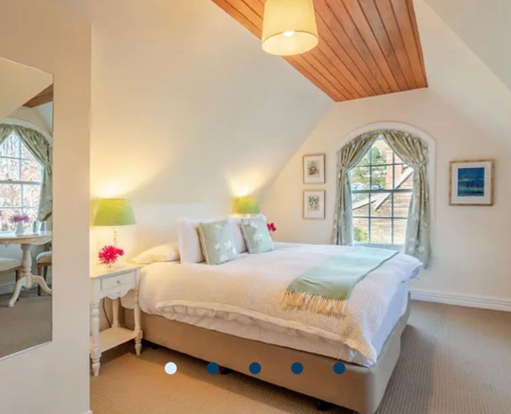 There are four stunning bedrooms with ensuites, and a fifth with twin beds and ensuite which can be shared by two artist friends with a commensurate reduction in price; two large living spaces to share and a picture-perfect cottage garden.